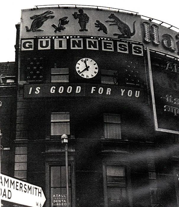 The most famous of all these clocks was the one in Piccadilly Circus, London, and 'meet me under the Guinness clock' was a common phrase at this time.
